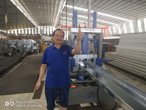 A Ganzhou Hongfa é uma empresa profissional que produz terças CZ, telhas coloridas, etc. Esta máquina perfiladeira de rolos para terças CZ é a primeira máquina que eles compraram da nossa empresa, e agora eles estão planejando comprar outra máquina perfiladeira de rolos para telhas da nossa empresa.
