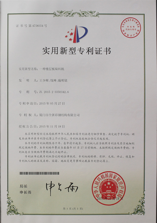 Certificado de Patente de Empilhamento de Paletes