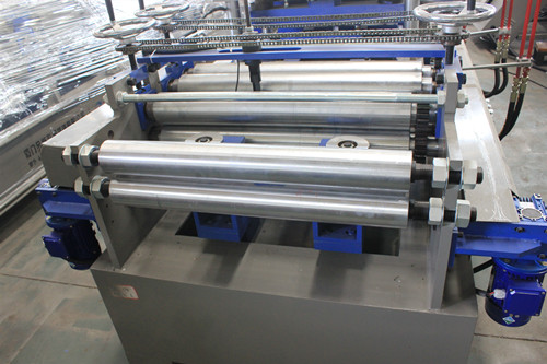 Dois rolos (um para cima e um para baixo) para guia de material e 5 rolos (2 para cima e 3 para baixo) para endireitamento.